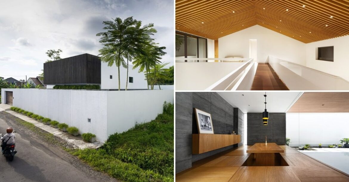 Hence, the house stood out in a nice plot of land surrounded by nature elements while keeping privacy with white, tall walls and interesting facade.